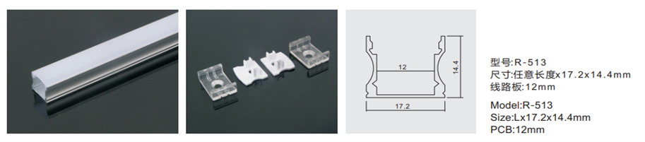 Pik A LED > Products > Aluminum Profile 3m with PVC Lens R-513