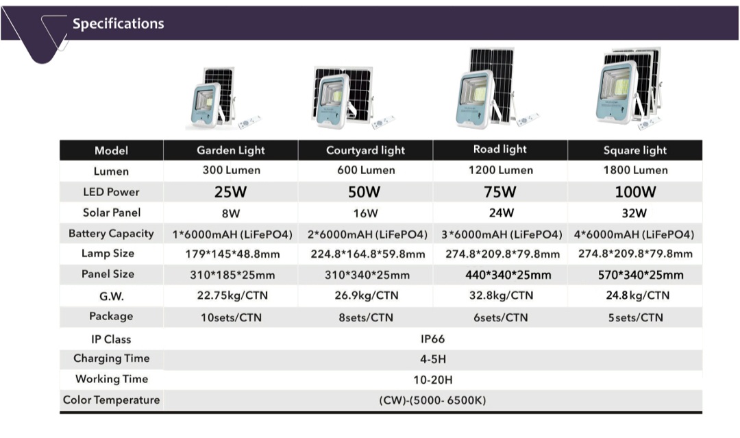 25W Flood Light LED with build in LifePO4 Battery and Solar Panel